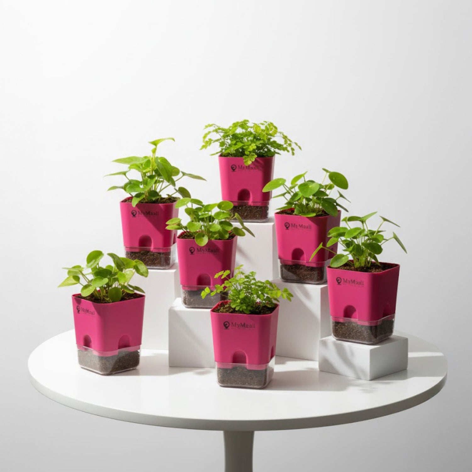 Self-Watering Square Plastic Planter with Transparent Base